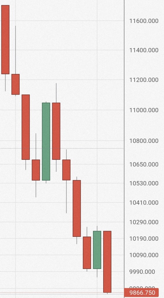 ايضا خلال يومه الثالث بدأ في تسجيل قيعان جديدة للعام ككل و اخذ يتدلى القاع السنوي يوميا حتى انتهي الاسبوع و كان اقل سعر له هو القاع السنوي الجديد عند 9,857