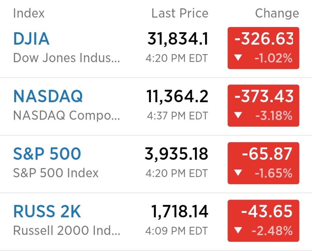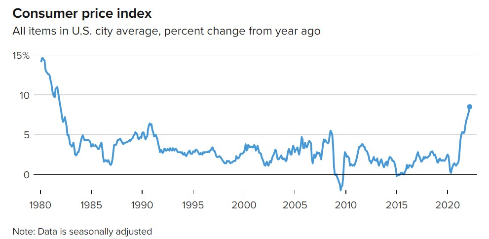 يوم سىء للاسواق الامريكية و خاصا بورصة الناسداك و يوم اسود للعملات الرقمية المشفرة و ذلك بعد بيانات اسعار المستهلكين و التي توضح تأثير التضخم – مؤشر من ضمن مؤشرين يتم بهما قياس التضخم على الاسعار و الثاني هو مؤشر اسعار المنتجين.
