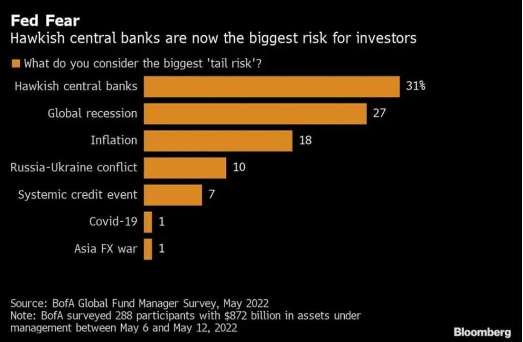 و قد صدر تقرير من بنك اوف امريكا عن اكثر المخاوف التي تقلق المستثمرين حول العالم و مدى تغير اسبابها مع الوقت ، و قد وضح التقرير ان أكبر اسباب هذه المخاوف في الوقت الحالي هى السياسيات النقدية للبنوك المركزية يليها التخوف من كساد عالمي و ذلك بعدما كانت ازمة الوباء هى المسيطرة في الاعوام السابقة
