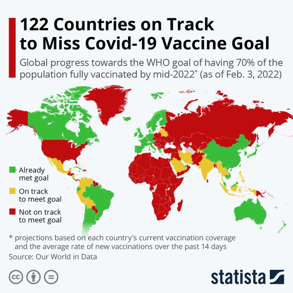 في وقت اعلان الاستراتيجية بالفعل في اكتوبر ،2021 فان 56 دولة لم يصلوا للنسبة السكان الملقحين بينما وصلت 70 دولة لهدف تلقيح 40٪ من السكان في نهاية سبتمبر