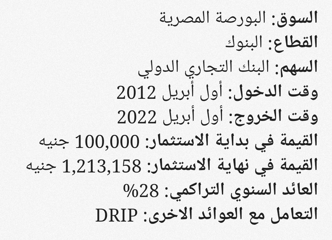 فانه رغم كل ذلك تظل عملية الاستثمار ذو عائد جيد و مربح و يفوق في عائده شهادات الاستثمار في البنوك و يفوق العديد من اشكال الاستثمار و التجارة و إقامة المشاريع الاخرى و سوف نثبت ذلك بالامثلة و ليس نظريا فقط؛ و هى أمثلة حية ايضا و ليس اختبار لطرق معينة للاستثمار و يمكن بسهولة اثباتها للناس؛ و حية بمعنى انها عمليات تمت بالفعل في محافظ أشخاص مصريين و في السوق المصري