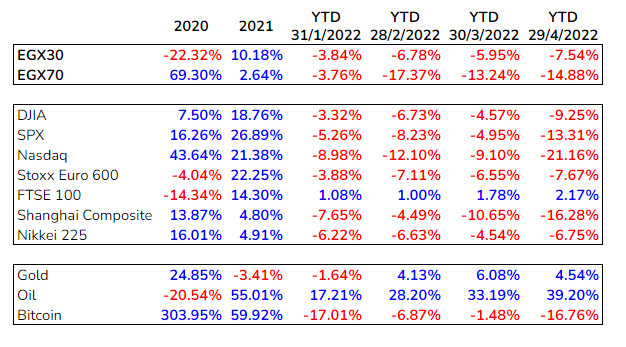 بعد نهاية شهر أبريل يوضح تحديث احصائيات الاسواق كم العائد بكل سوق منذ بداية العام حتى الآن مع رؤية كيف كان الآداء أيضا منذ بداية العام حتى نهاية كل شهر مع اضافة عائد 21 و 20 و هم بداية هذا العقد