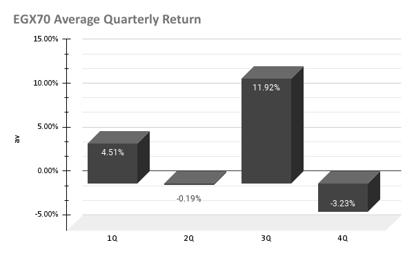 جدير بالملاحظة ايضا أن المؤشر السبعيني عندما كان يبدأ العام في الربع الأول بهبوط كبير يخالف هذا الهبوط بارتفاع كبير في الربع الثاني من العام مثلما فعل في 2020 بعدما انهار 21.48 في المائه تبع ذلك ارتفاع بنسبة 45.86 في المائة في الربع الثاني و ايضا في عام 2011 عندما هبط 21 في المائة في الربع الاول تبعه ارتفاع بنسبة 8.76 في المائة في الربع الثاني و لكن أيضا علينا ان نأخذ في الاعتبار قصر تاريخ المؤشر منذ اطلاقه في 2008